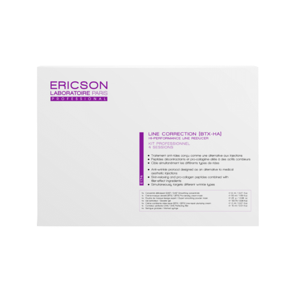 Ericson Laboratoire Line Correction -tuotelinja on vaihtoehtoinen ja täydentävä hoitosarja esteettisten injektiohoitojen rinnalle. Tuotteet estävät vapaiden radikaalien haitallisia vaikutuksia ihossa, vaikuttaa edesauttavasti ryppyjen vähentymiseen sekä täyttää juonteita hyaluronihappoyhdisteen avulla.